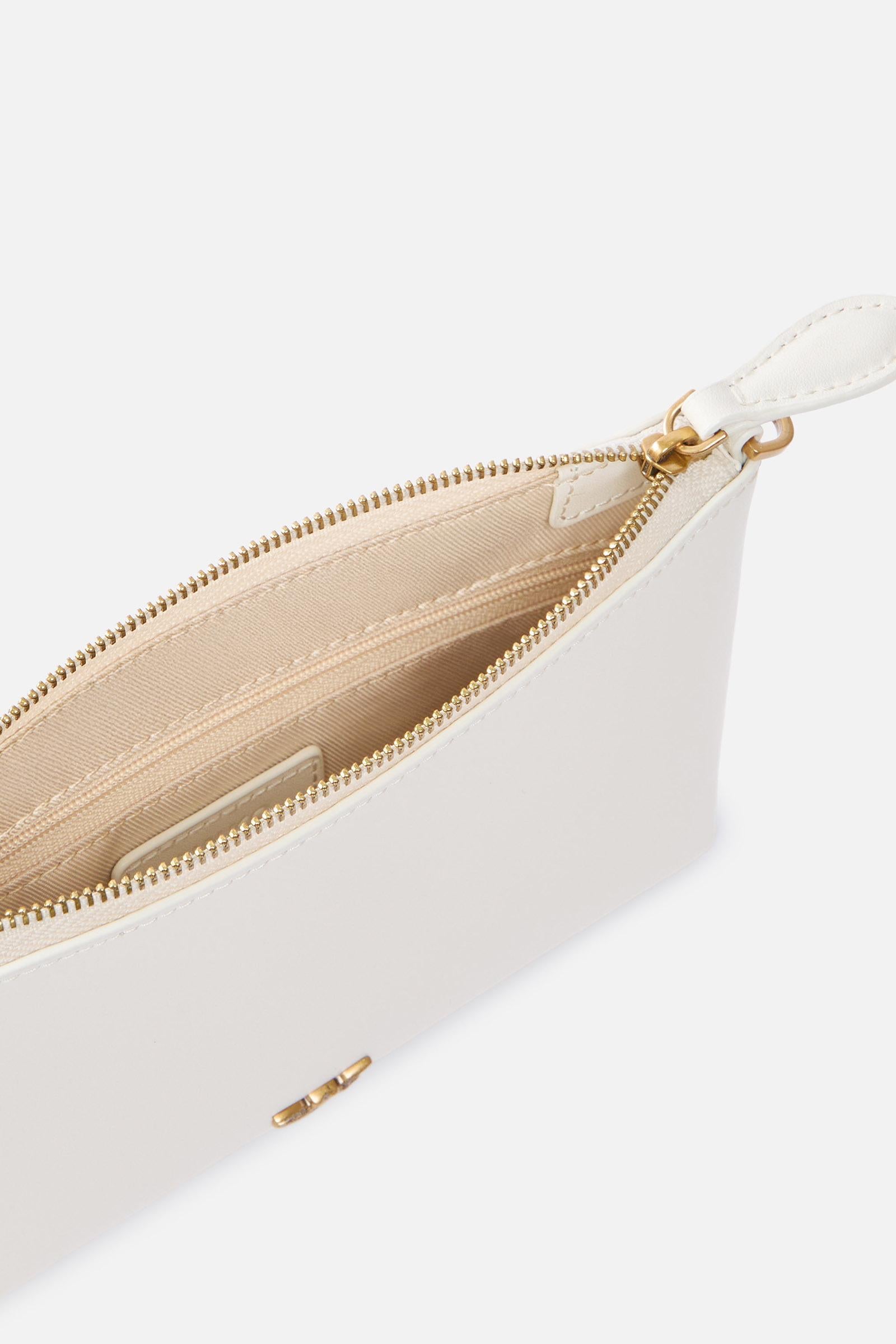 Pochette piatta dalla forma rettangolare realizzata in pelle mano seta e dotata di fodera in cotone e chiusura con zip. La borsetta risulta estremamente versatile e pratica grazie alla tracolla regolabile e rimovibile che offre una doppia opzione di portabilità: a mano oppure a tracolla. Il design viene completato dall'iconico Love Birds, in galvanica resistente color antique gold, che si fa portavoce dell'inimitabile stile del brand. Essenziale e raffinato, questo accessorio è il pezzo mancante dei tuoi look da giorno e non solo. Attiva la tua borsa PINKO: verifica l'autenticità del tuo prodotto e accedi all'esperienza personalizzata avvicinando il tuo smartphone al ricamo Love Birds che trovi sul retro della borsa!Pelle: PELLE DI VACCA 100% - Fodera: COTONE 100% - 663: NYLON 50% POLIURETANICA 50%