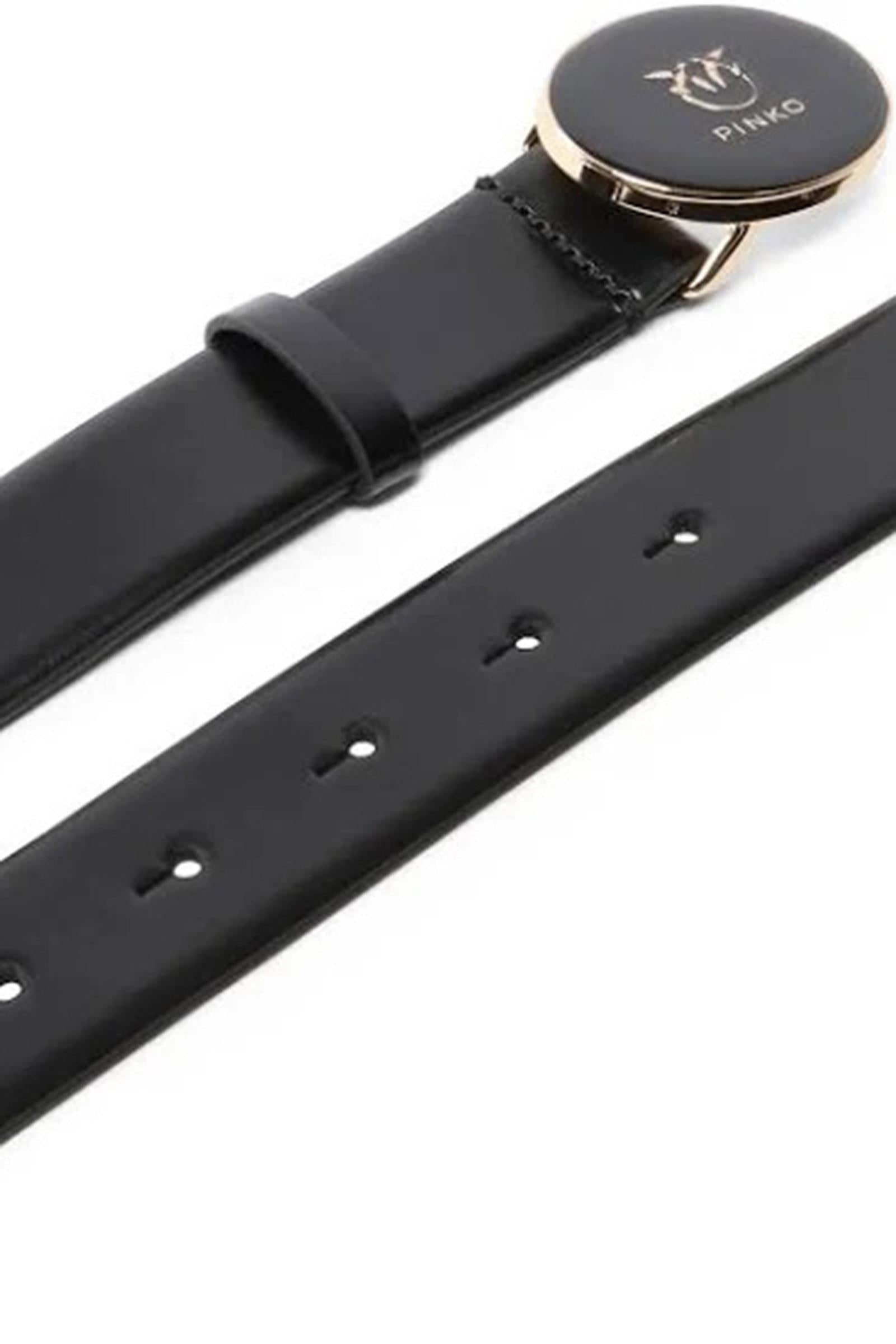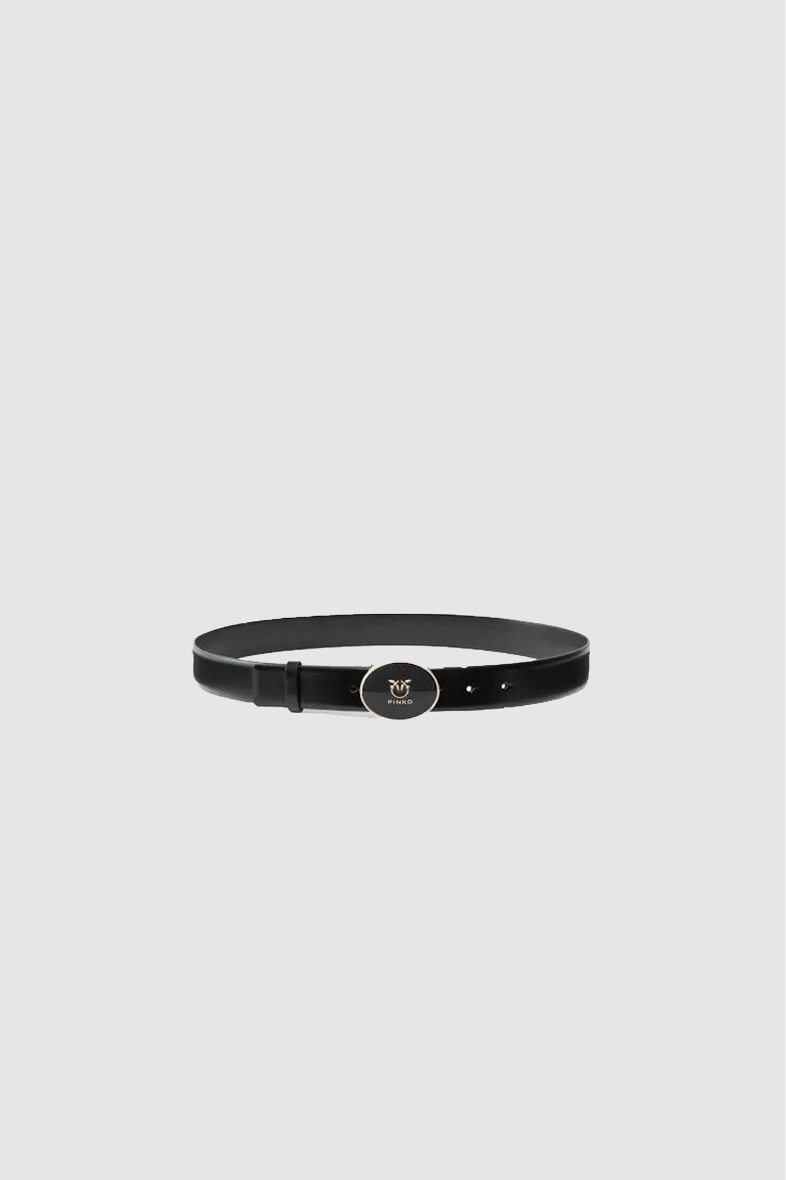 Cintura a vita bassa in pelle di vitello liscio con fibbia rotonda effetto smaltato con logo.