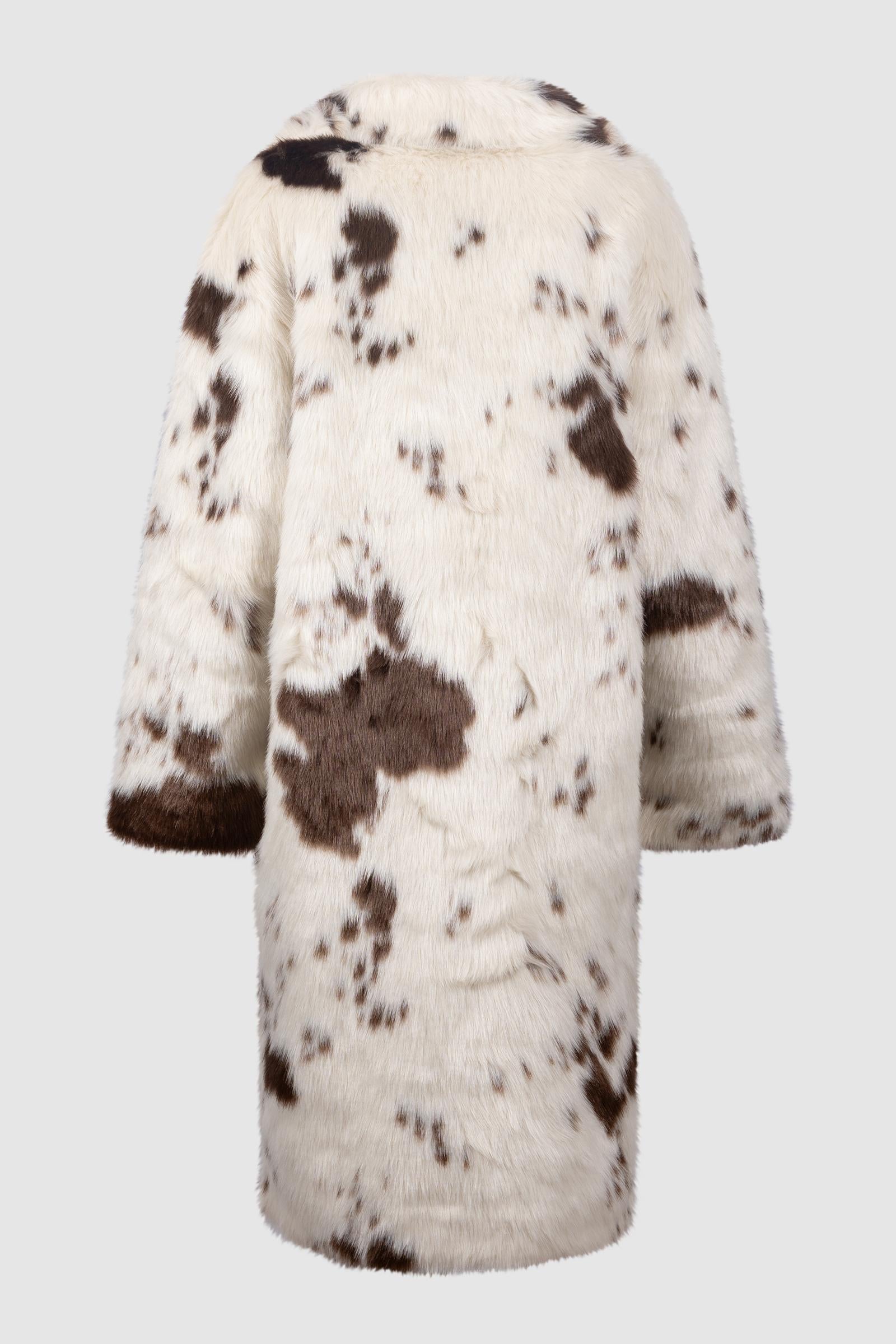 Il motivo maculato bianco e marrone dona al capo uno stile deciso e sofisticato, perfetto per affrontare la stagione invernale con personalità.
