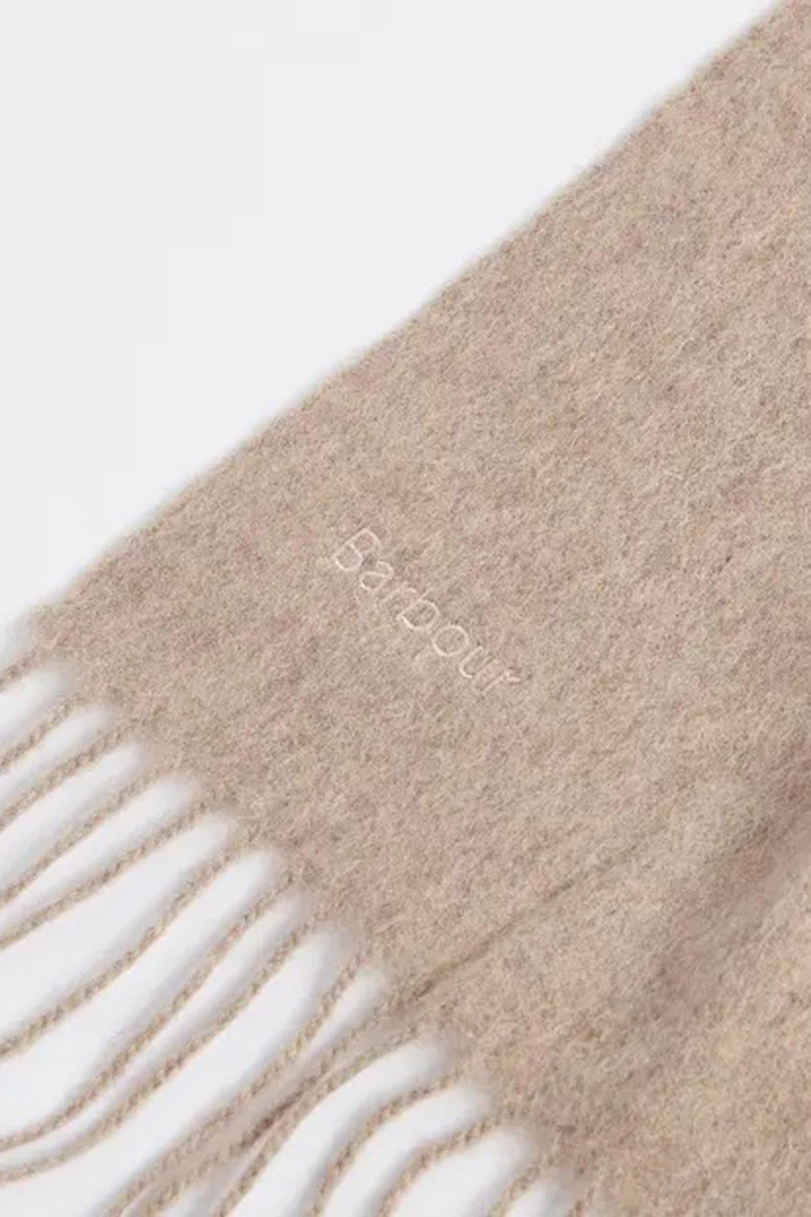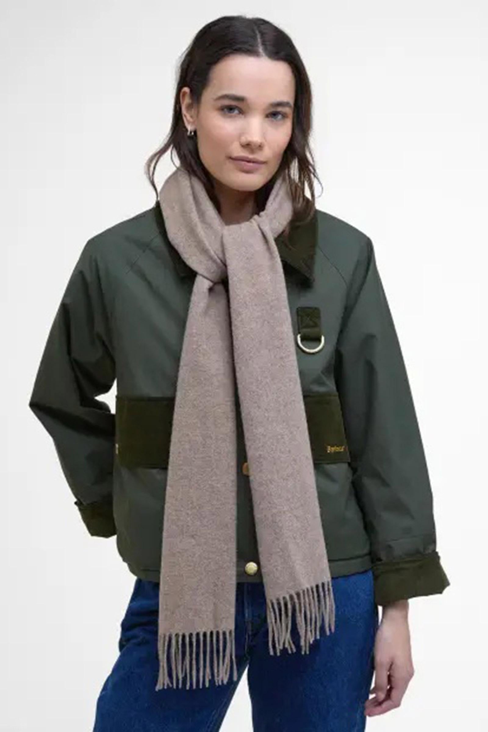 Tessuta in pura lana d'agnello, questa versatile sciarpa ha un'incredibile morbidezza e un tradizionale orlo con nappe.Tessuto principale: 100% lana d'agnello Ricamo Barbour Larghezza: 25 cm. Lunghezza: 180 cm Lavare unicamente a secco.