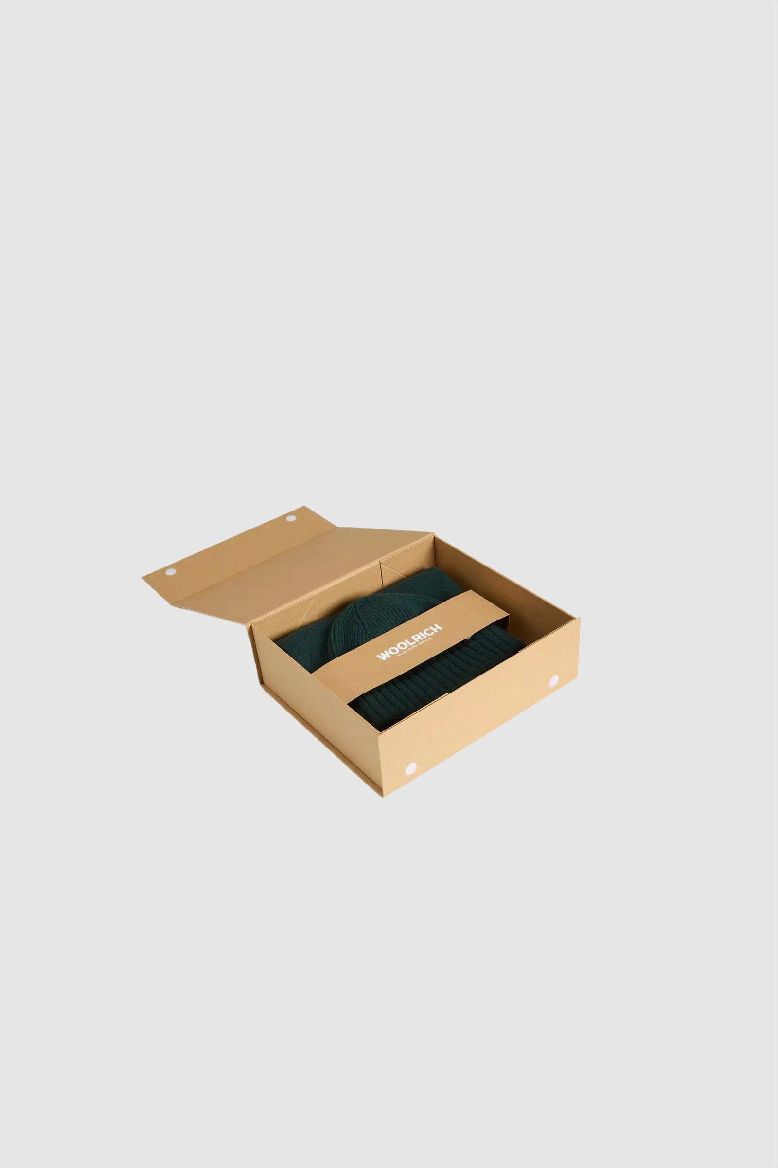 Un'idea regalo utile e raffinata, perfetta per accogliere la stagione fredda con stile. Questo set, realizzato in misto lana Merino e rifinito con cura artigianale Made in Italy, unisce comfort, calore ed eleganza. All'interno dell'elegante box troverai un berretto a costine con risvolto ed etichetta con logo, accompagnato da una sciarpa lavorata in punto jersey, con estremità a costine ed etichetta con logo.Berretto realizzato in misto lana Merino
