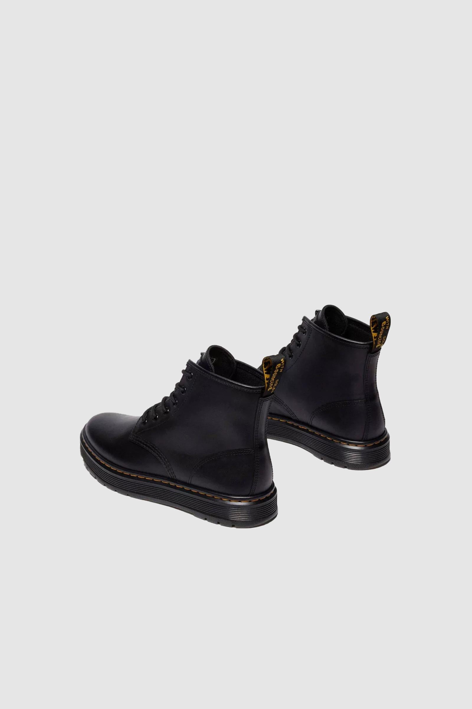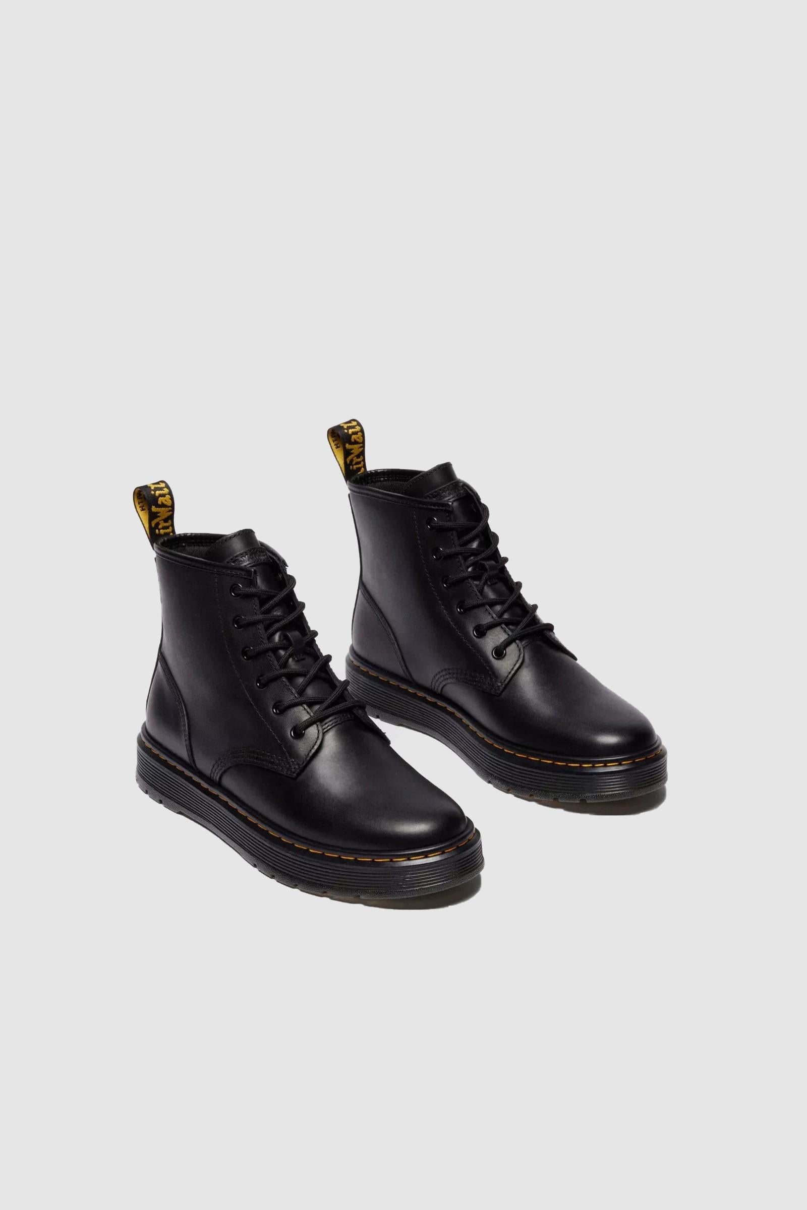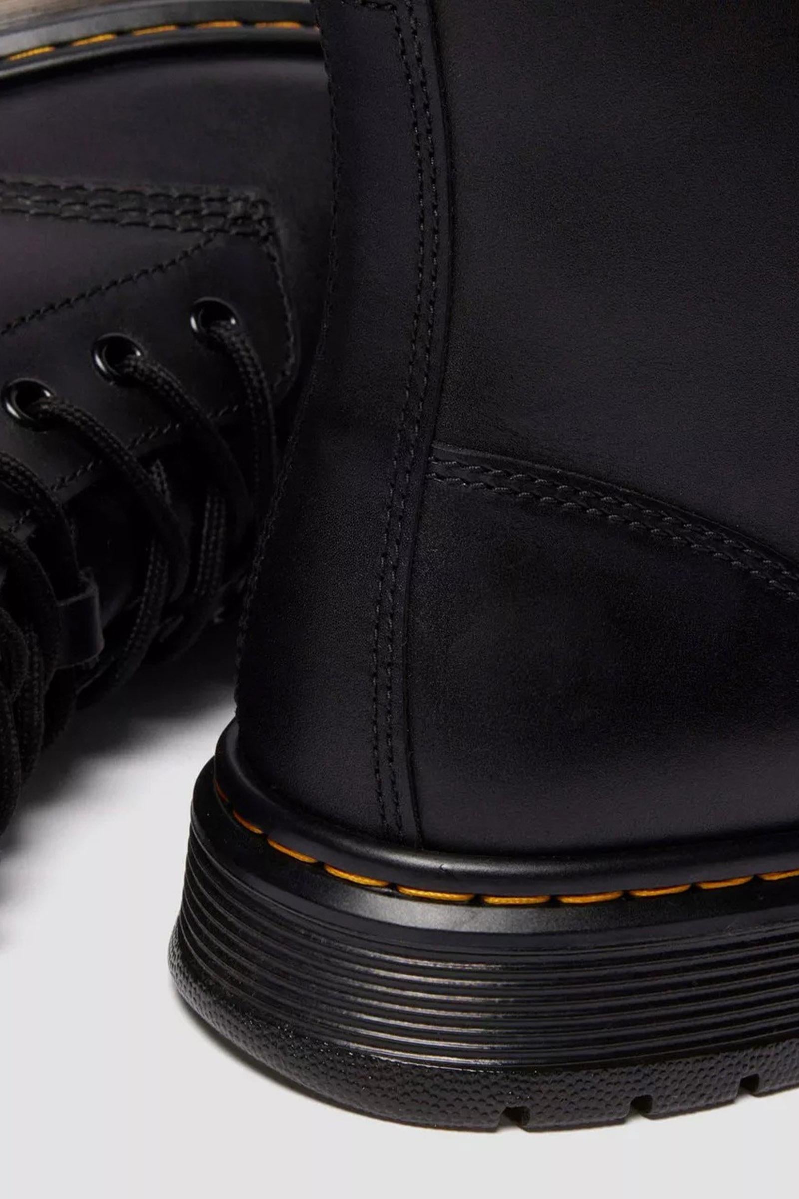 Movimento puro. I nostri stivali utility Brookline Chukka a 6 occhielli mostrano tutta la loro anima utilitaria, ma con tonnellate di stile Dr. Martens. Realizzati in pelle Lusso, un materiale cerato, leggermente testurizzato e comodo fin dal primo passo. Una tomaia minimalista che rispecchia il tema monocromatico della calzatura, come si può notare dagli occhielli e dai lacci neri. Il tutto rifinito dai nostri segni distintivi: linguetta AirWair sul tallone, suola a cuscinetto d'aria Brookline e caratteristiche cuciture gialle.