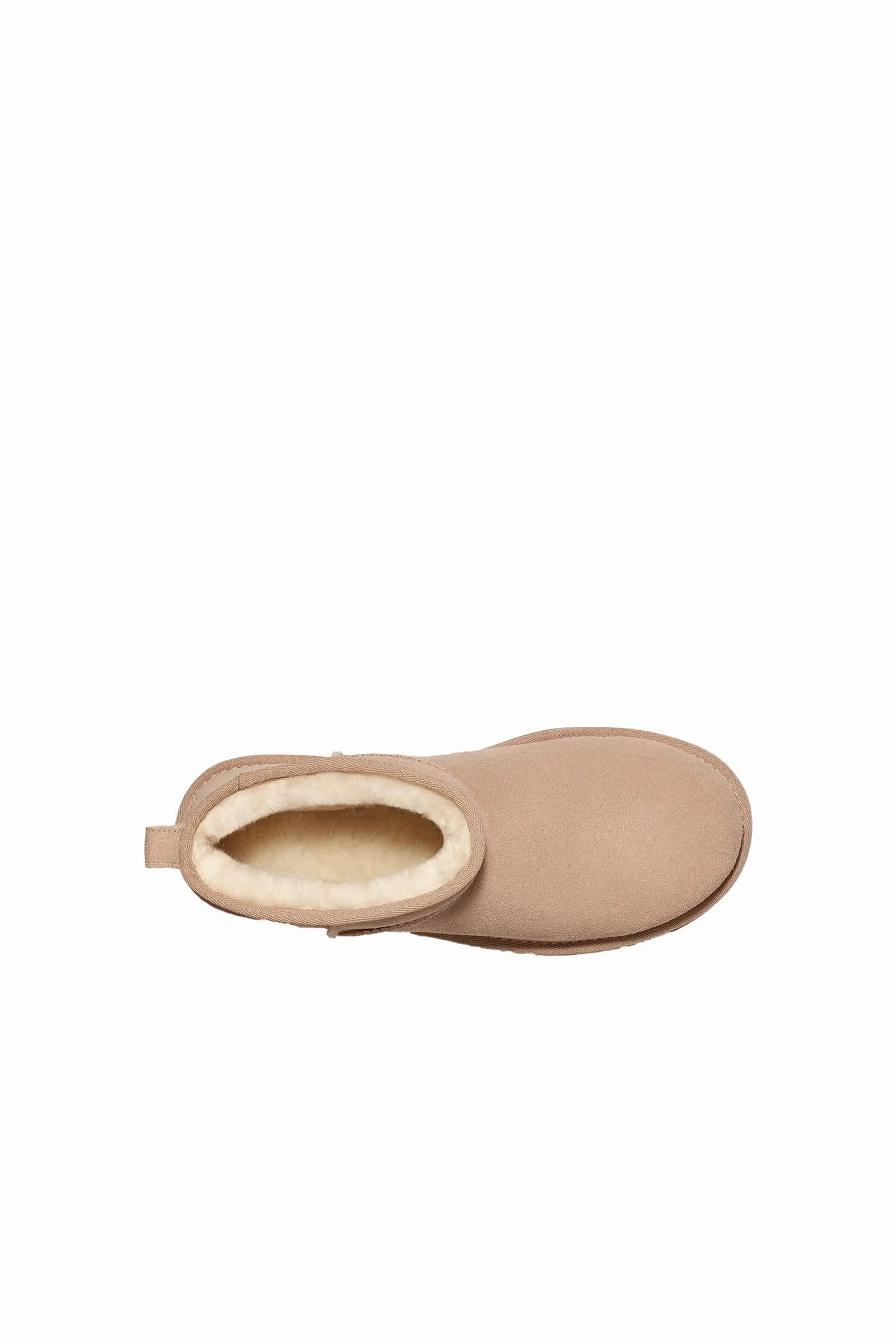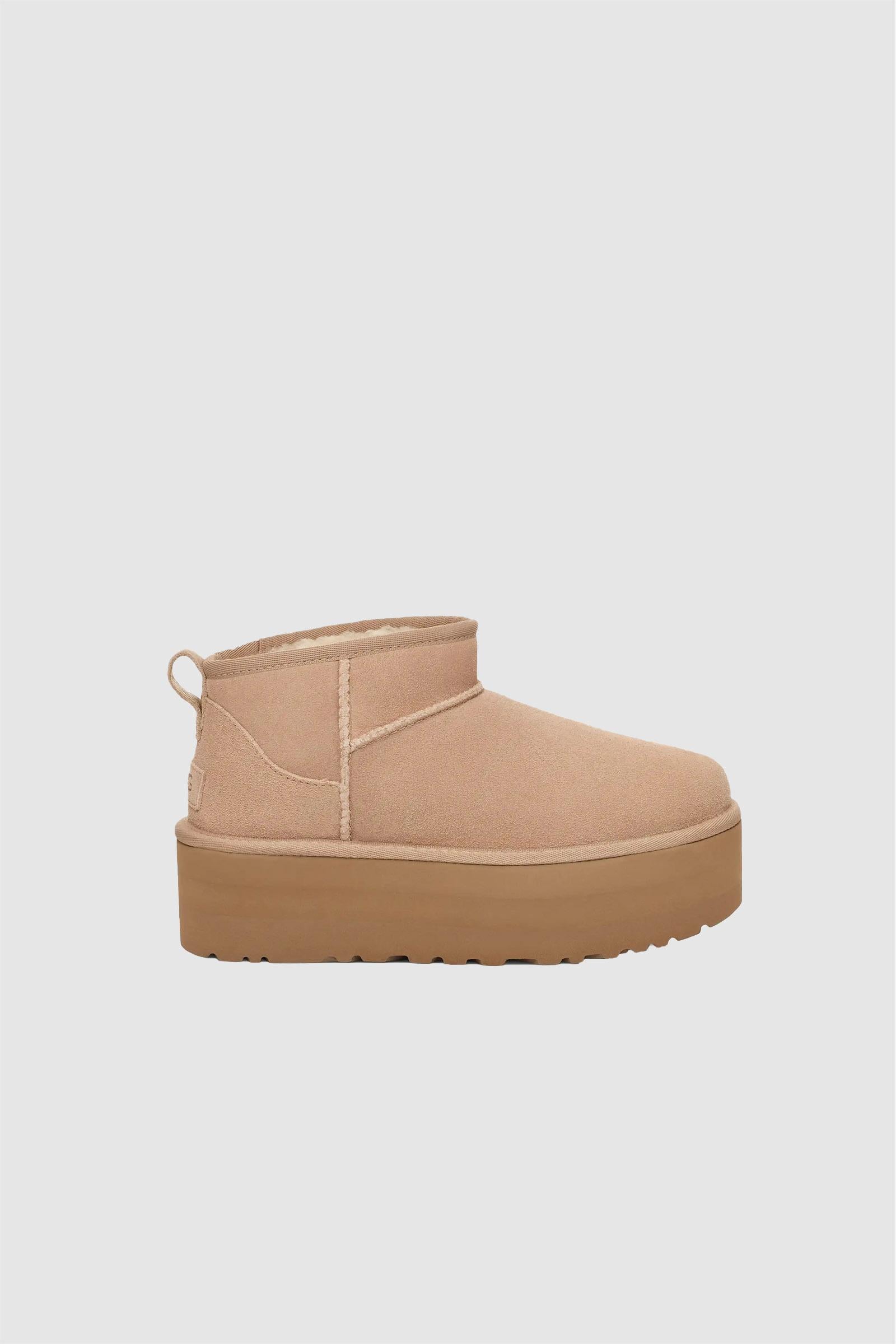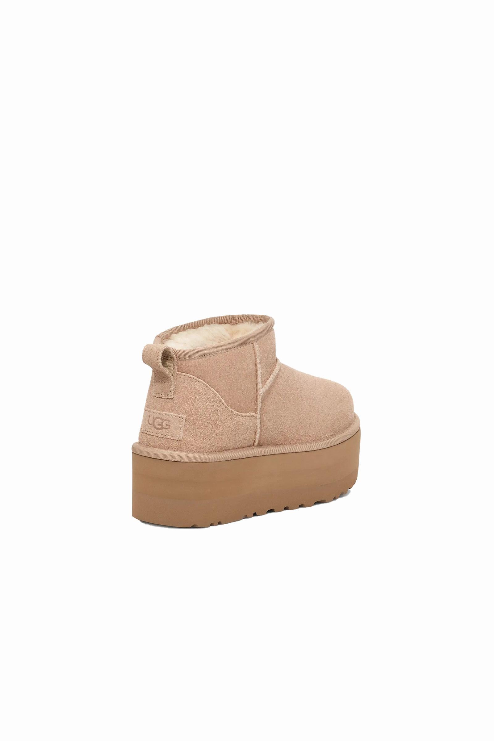 Gli stivali Classic Ultra Mini con plateau sono una combinazione must-have di spirito di novità e sentimento di nostalgia. Realizzato in pregiata pelle scamosciata, questo modello è foderato in misto UGGplush™ per una morbidezza estrema. L'articolo presenta una suola in EVA da canna da zucchero.Composizione:Tomaia in camoscio, cuciture overlock, tirante posteriore, bordo superiore asimmetrico