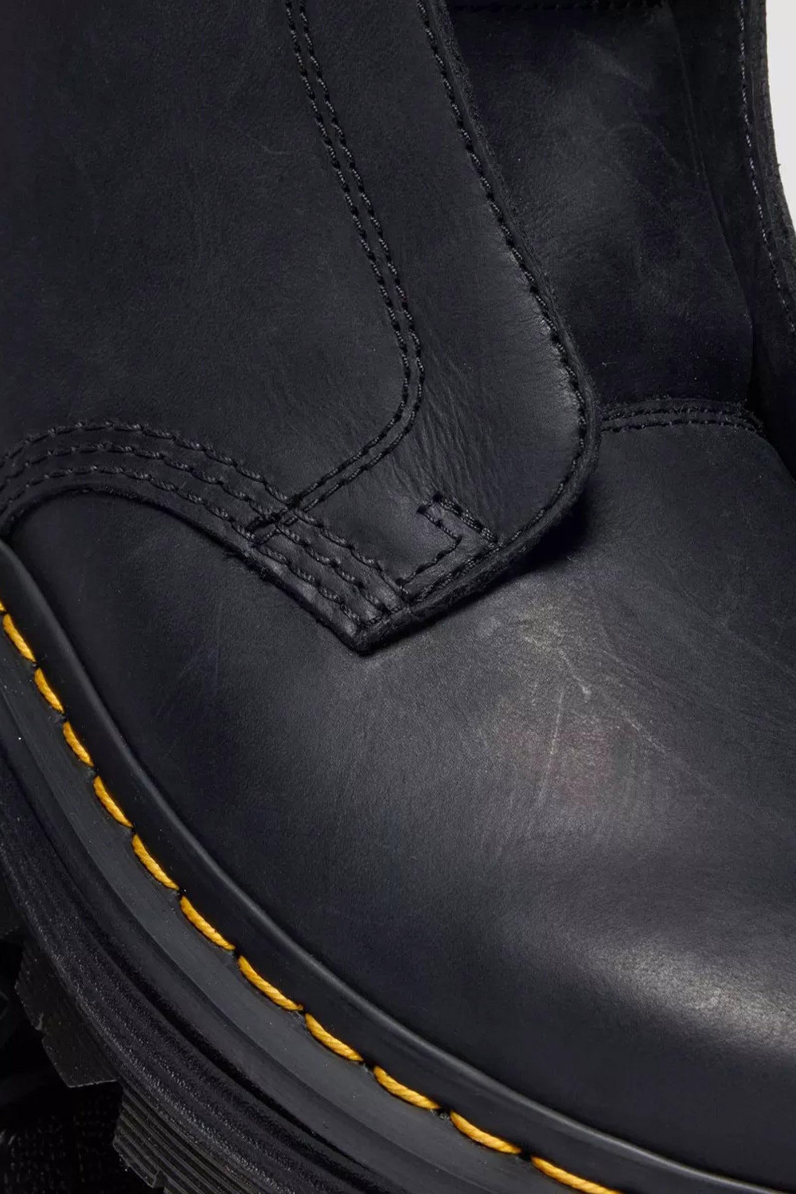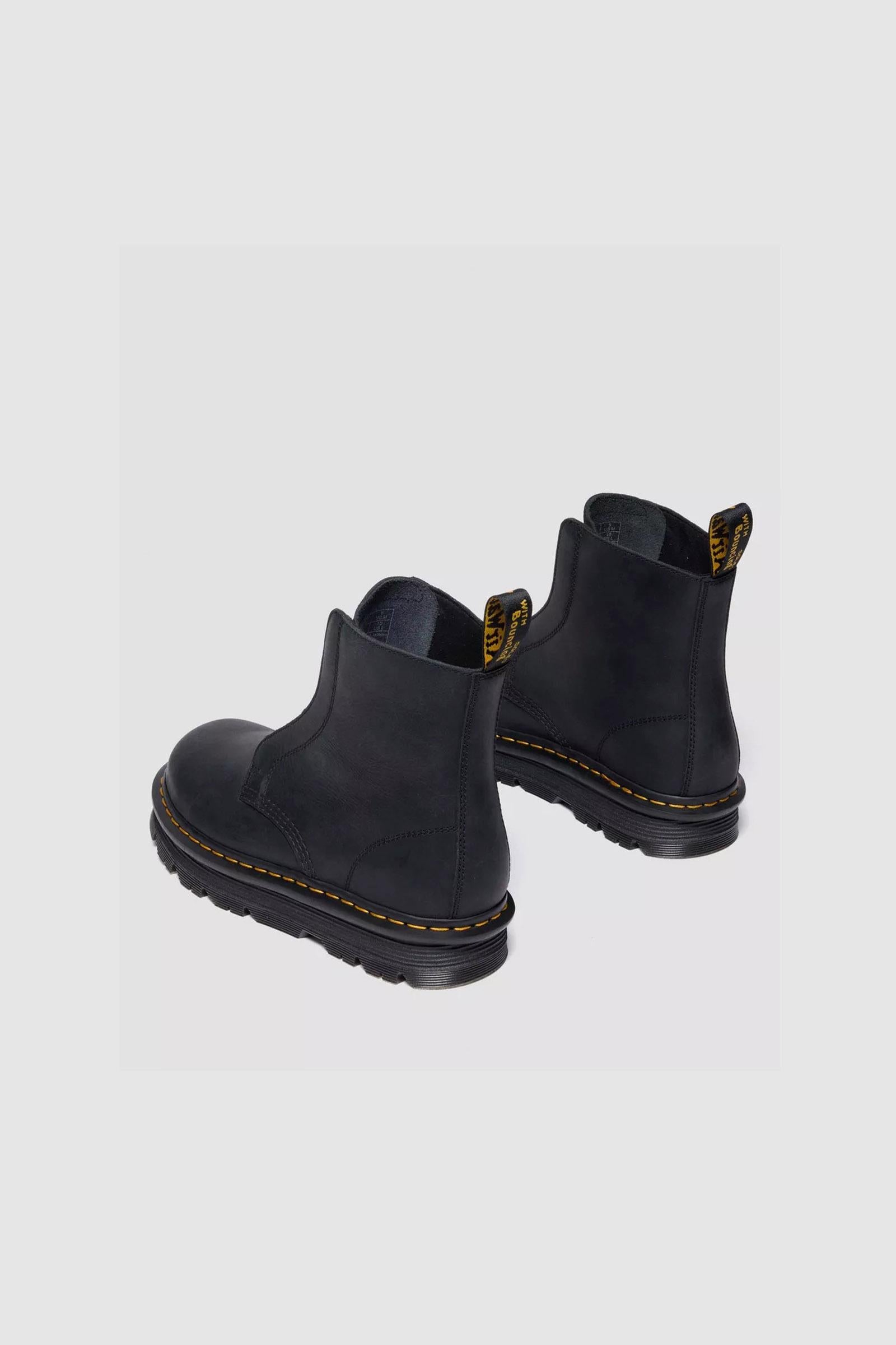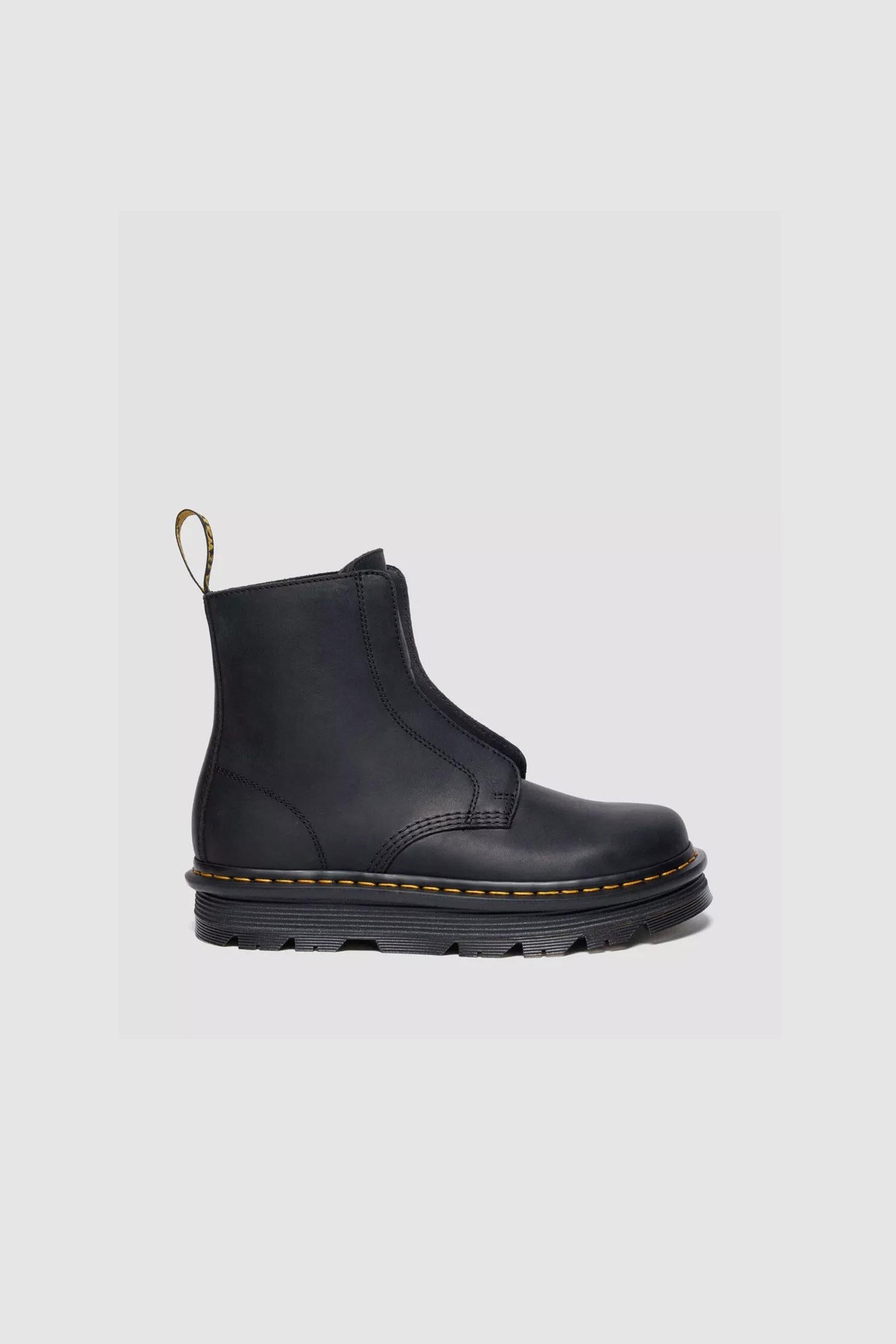 Vivi giornate leggere con i nostri nuovi stivali Zebzag Laceless. Realizzati in robusta pelle Wyoming, questa comoda silhouette rielabora il nostro storico design 1460, trasformandolo in un modello senza lacci. Minimo sforzo, massimo impatto. La suola ergonomica Zebzag fonde insieme leggerissima EVA con robusti inserti PVC per garantire una calzata comoda e senza stress. Con sottopiede SoftWair e segni distintivi Dr. Martens: bordo scanalato, caratteristiche cuciture gialle e linguetta AirWair sul tallone.