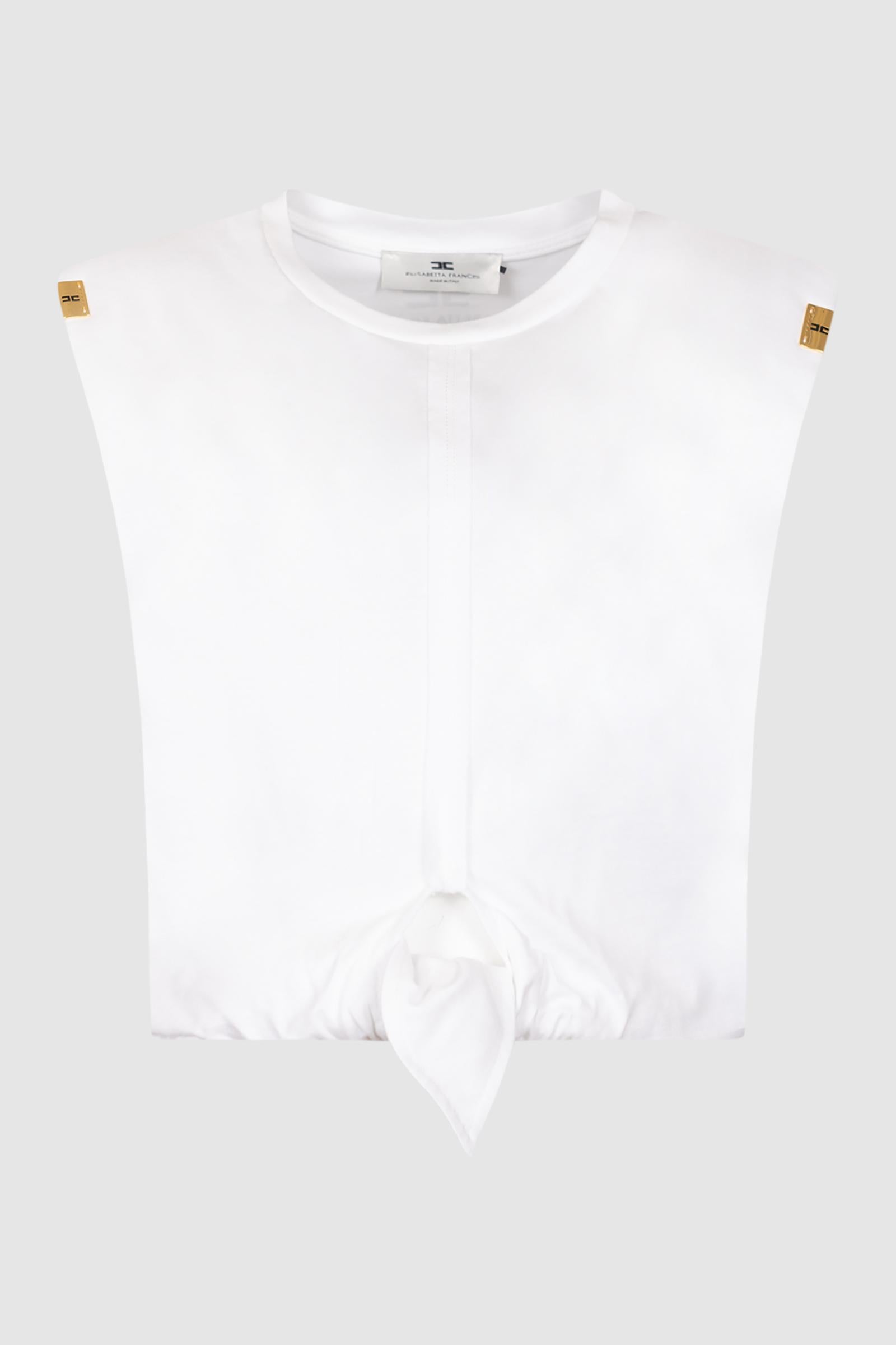 Maglietta in jersey. Ha girocollo, spalle strutturate ed è annodata al fondo per una silhouette definita. Le graffette sul giromanica e la stampa con logo sul retro aggiungono dettagli luminosi. Rifinita con inserti di passamaneria a taglio vivo e impunture. Vestibilità regular.Spalline imbottite