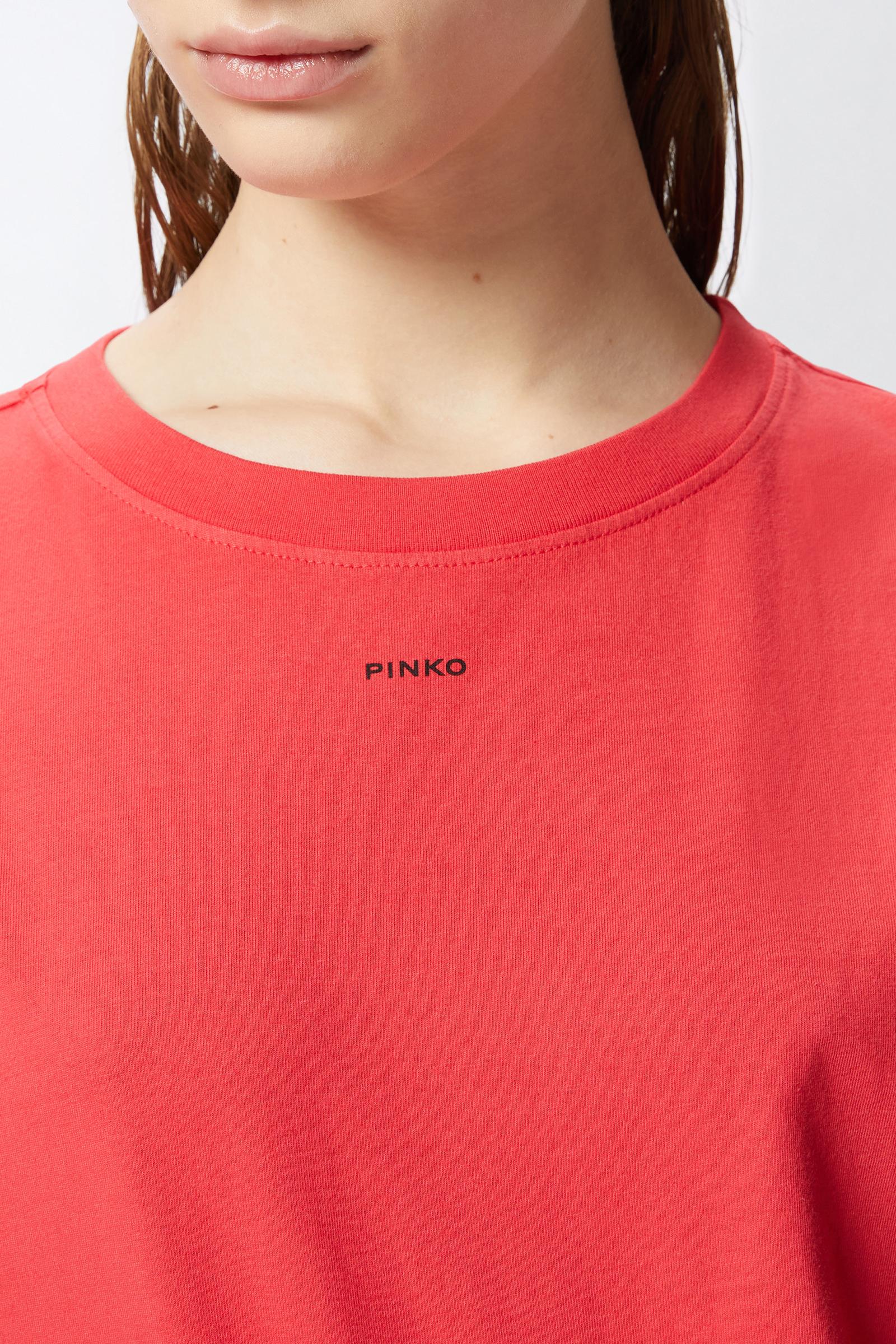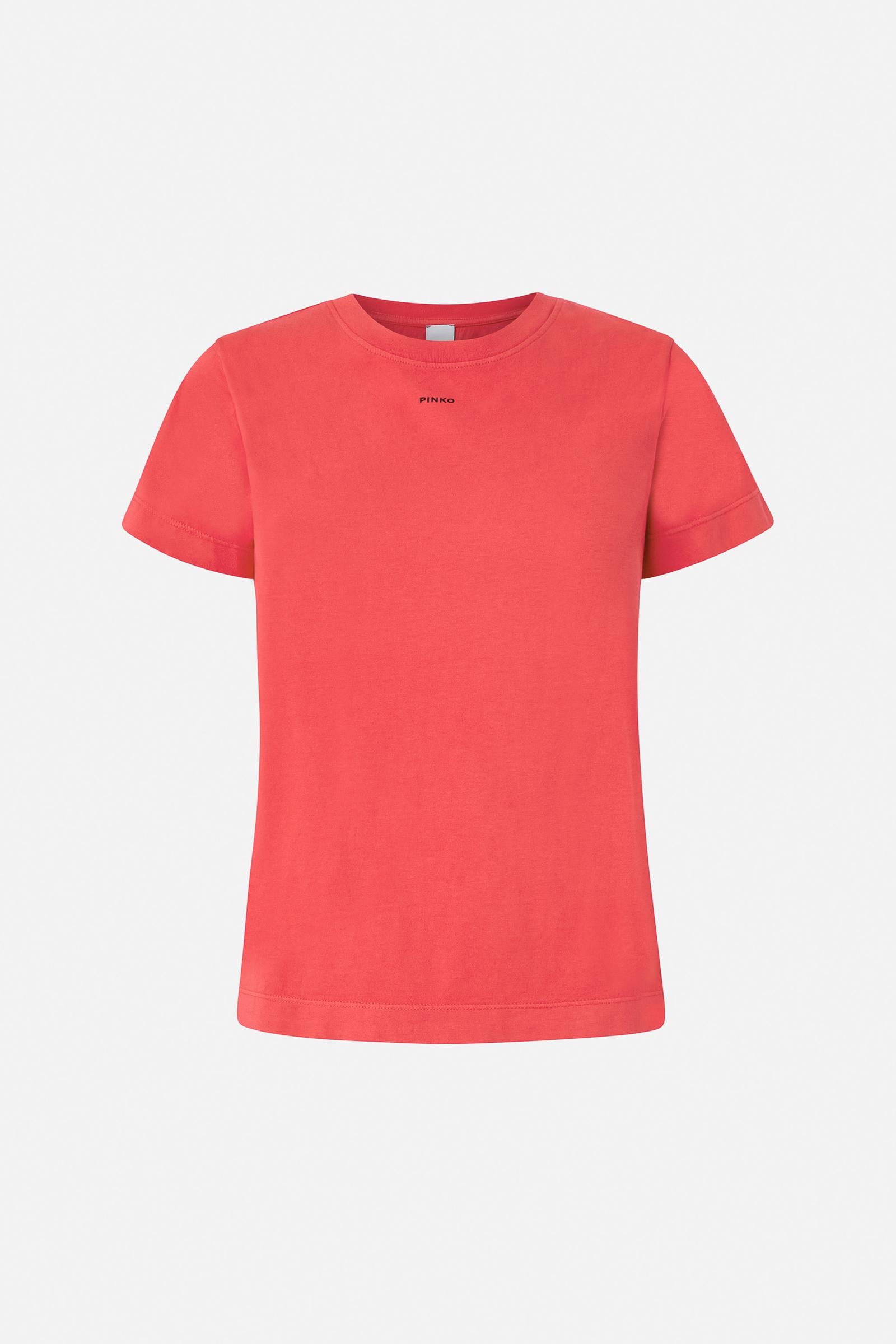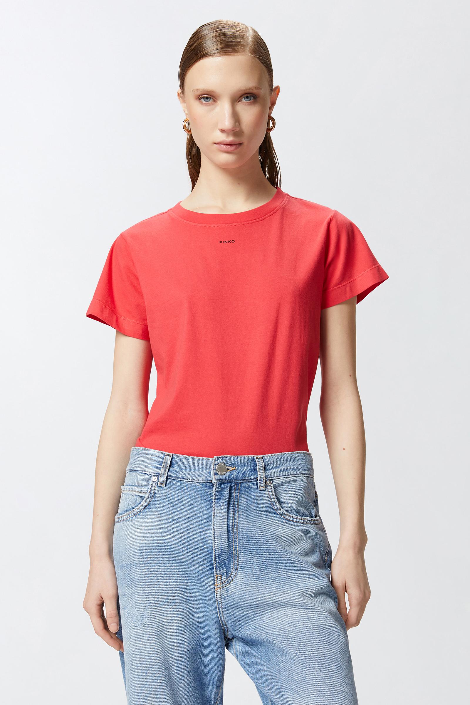T-shirt a maniche corte in jersey di cotone trattamento old wash personalizzata con stampa mini logo PINKO centrale davanti.Composizione:100% cotone.
