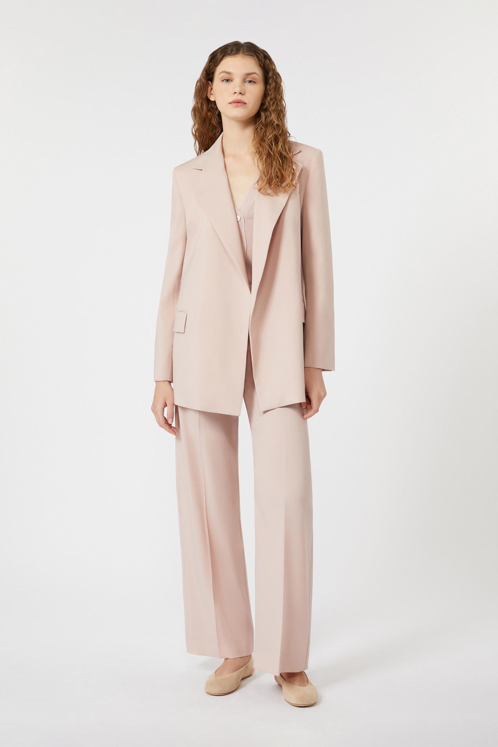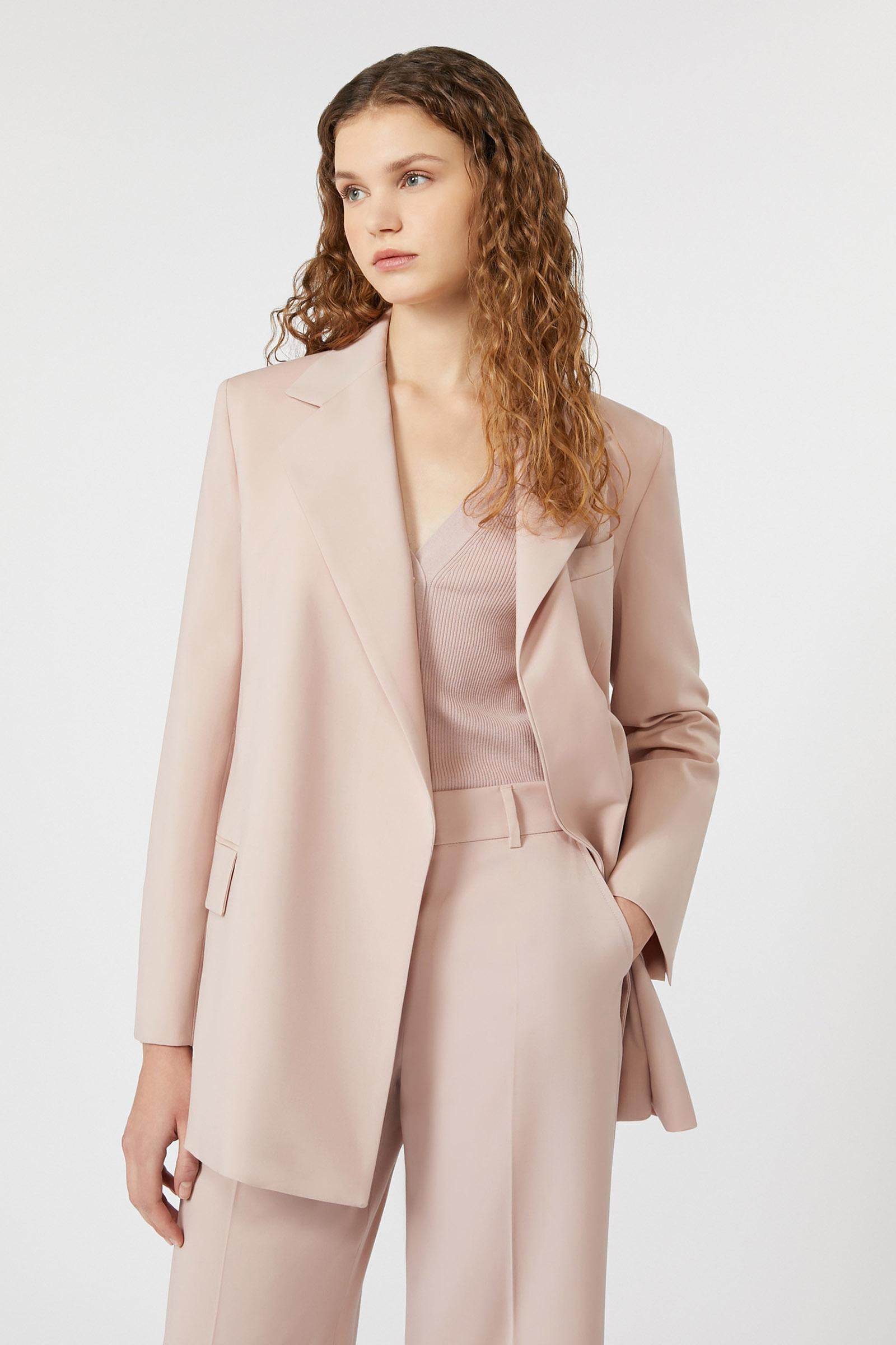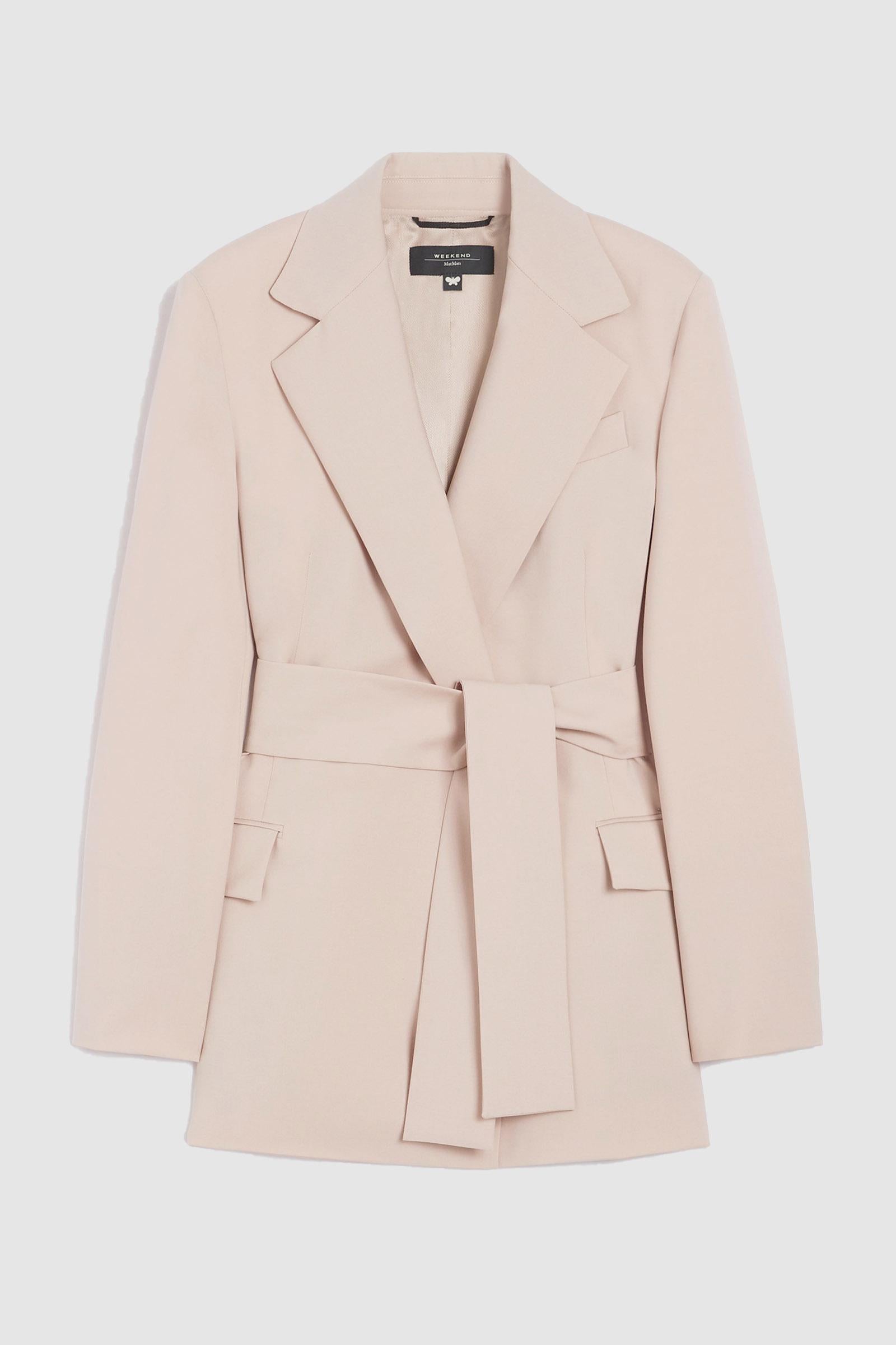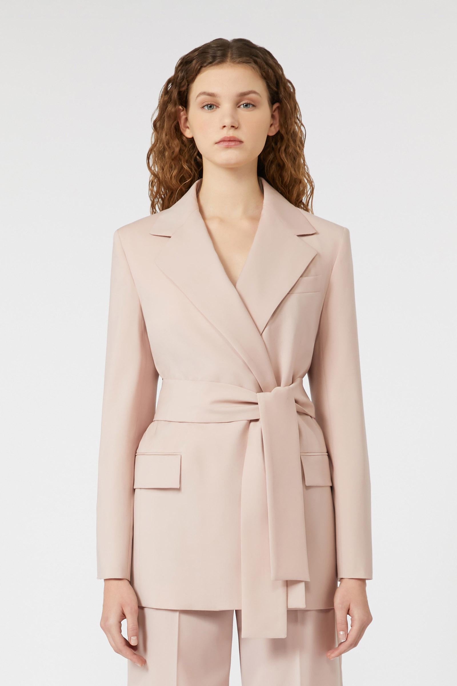 Giacca dalla linea dritta con cintura da annodare in vita per evidenziare la silhouette. - Giacca in tela di pura lana natural stretch - Collo a rever - Maniche lunghe a giro - Tasche a filetto con patta sul davanti - Taschino sul petto - Polsini alti con spacco alto laterale - Foderata. Composizione: Tessuto 100% lana vergine; fodera 50% acetato, 50% viscosa; fodera maniche 65% acetato, 31% poliammide, 4% elastan.