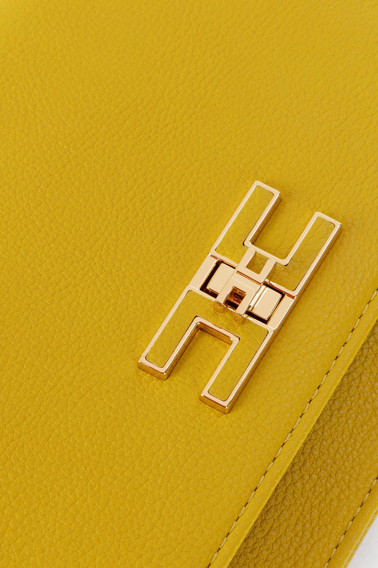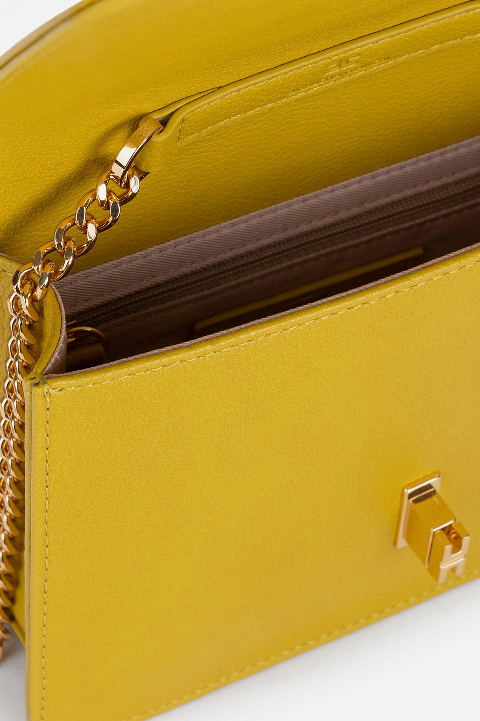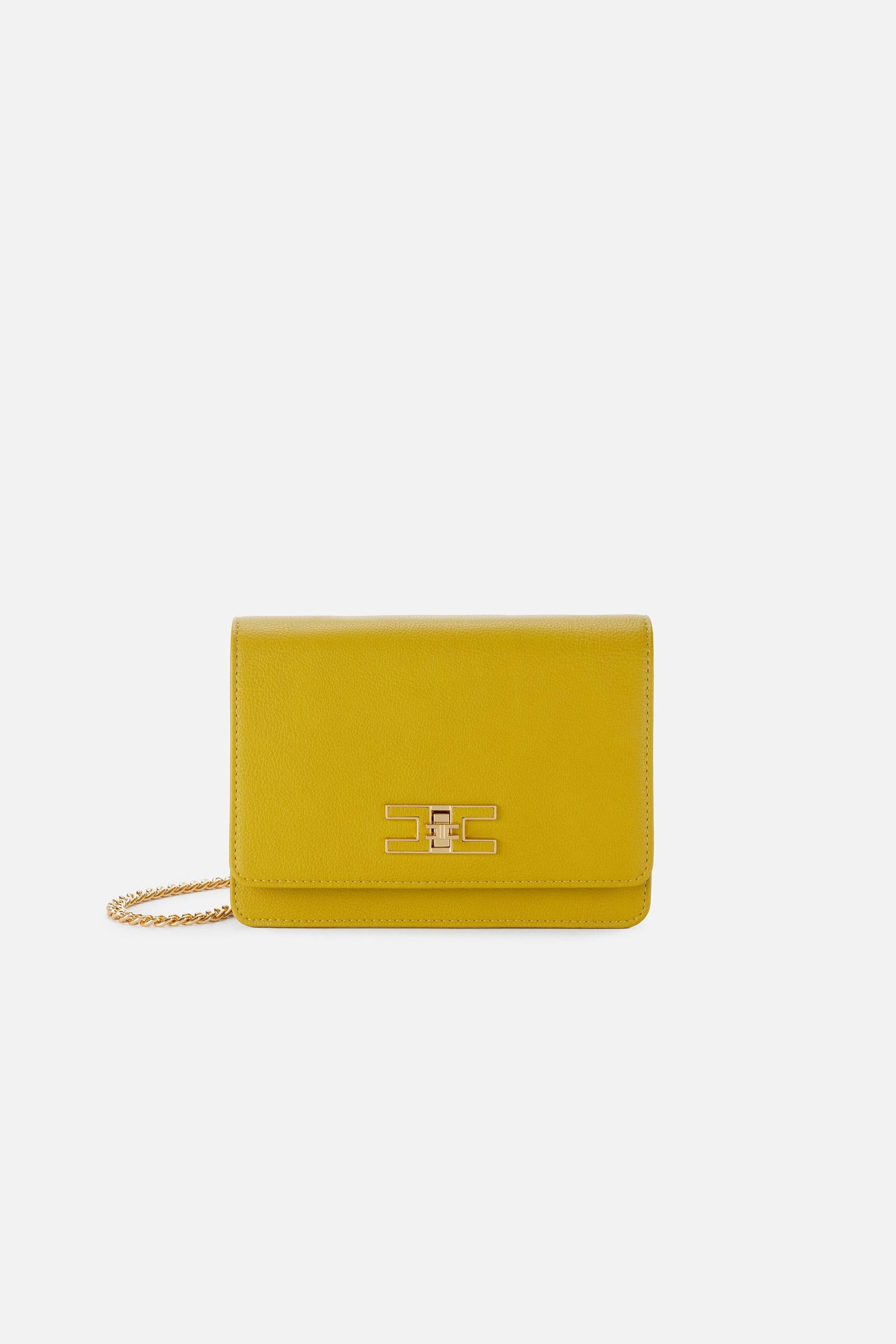 Borsa piccola a tracolla, realizzata in materiale sintetico effetto pelle bottalato. Ha catena groumette in metallo dorato che richiama la chiusura a girello con placca logo e inserto in pelle sintetica. Composizione: 59%Poliestere 22% LVE DI EGNO19%PU