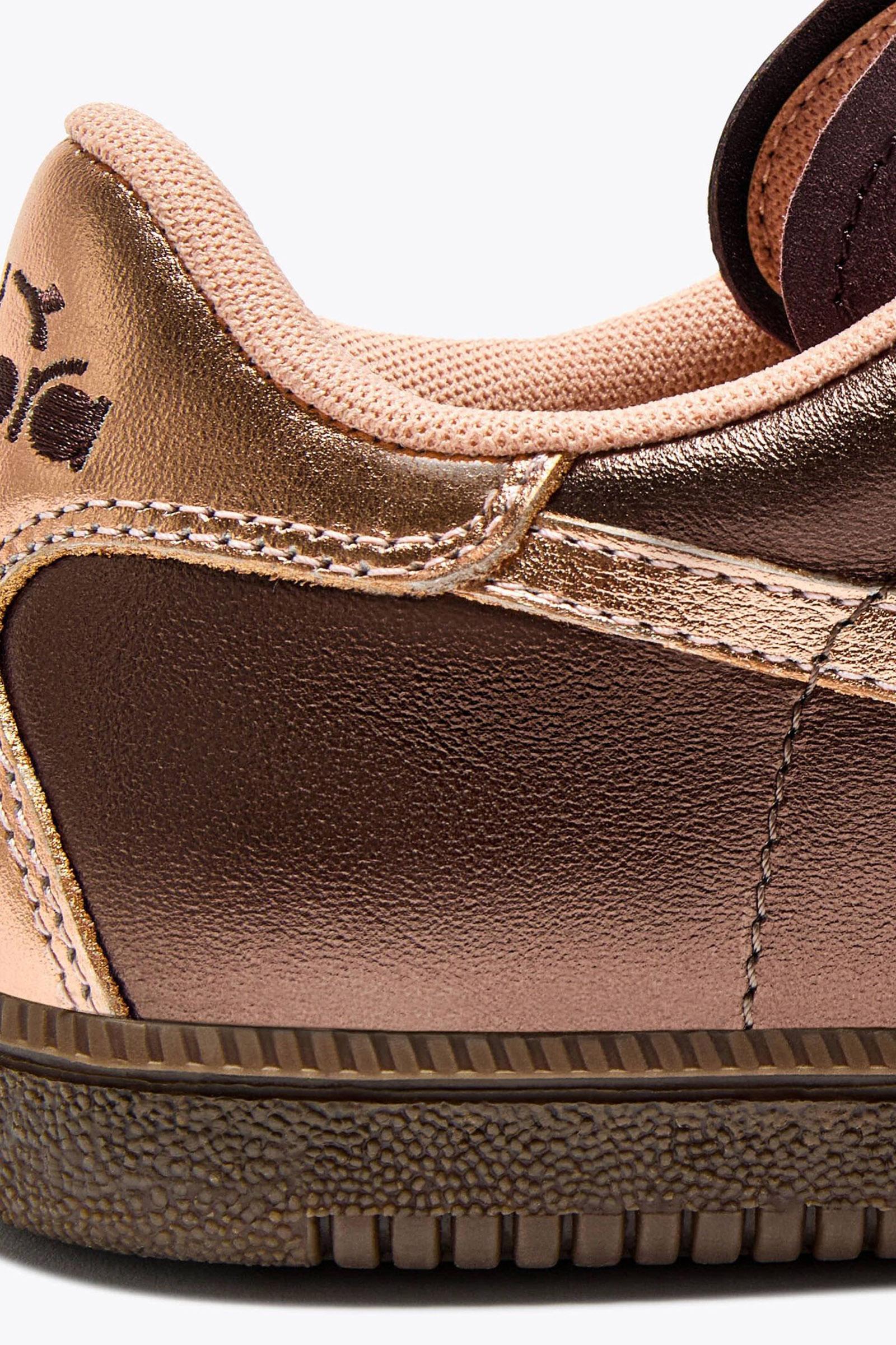 Trainer Metalized: l'iterazione con tomaia interamente in pelle metallizzata, con fregio a contrasto. Tutt'altro che low-profile.