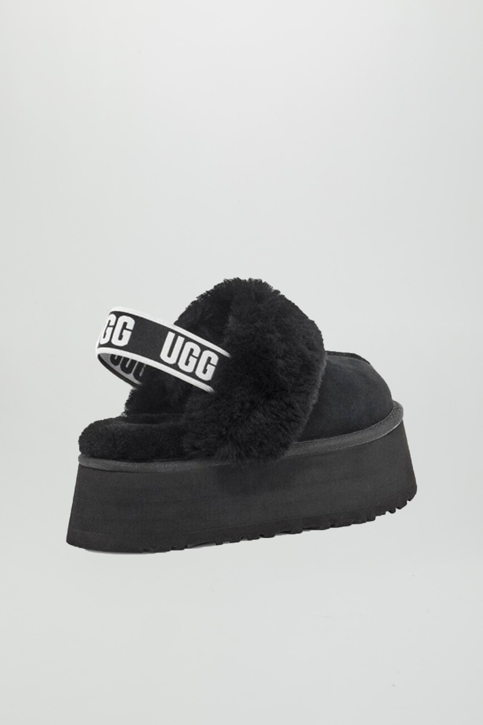 La suola platform in EVA leggera regala slancio alla figura senza sacrificare la comodità, rendendola perfetta per un look cozy ma alla moda, sia dentro casa che all'esterno. Il dettaglio del cinturino elastico con logo UGG aggiunge un tocco sporty-chic e assicura una calzata stabile e sicura.
