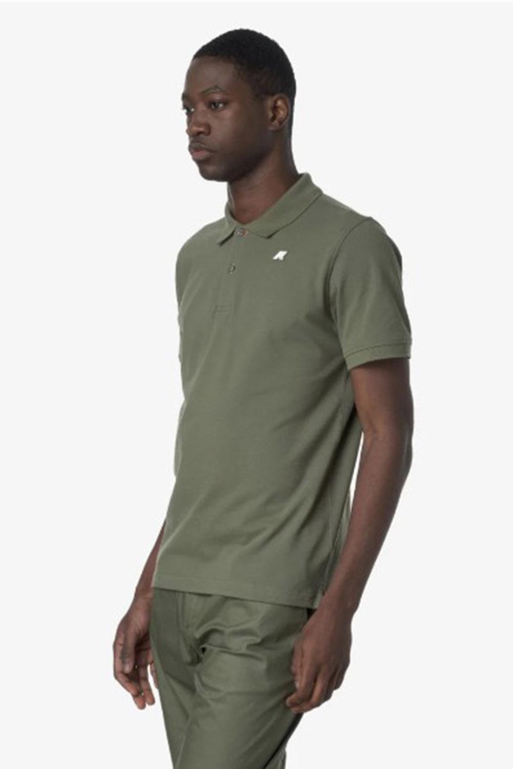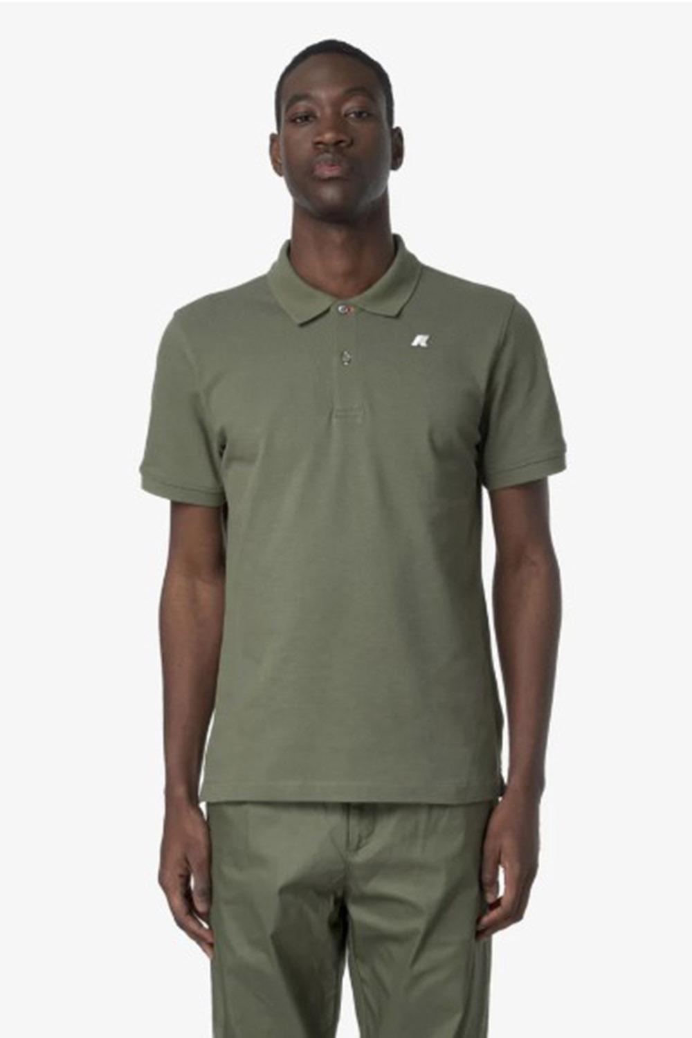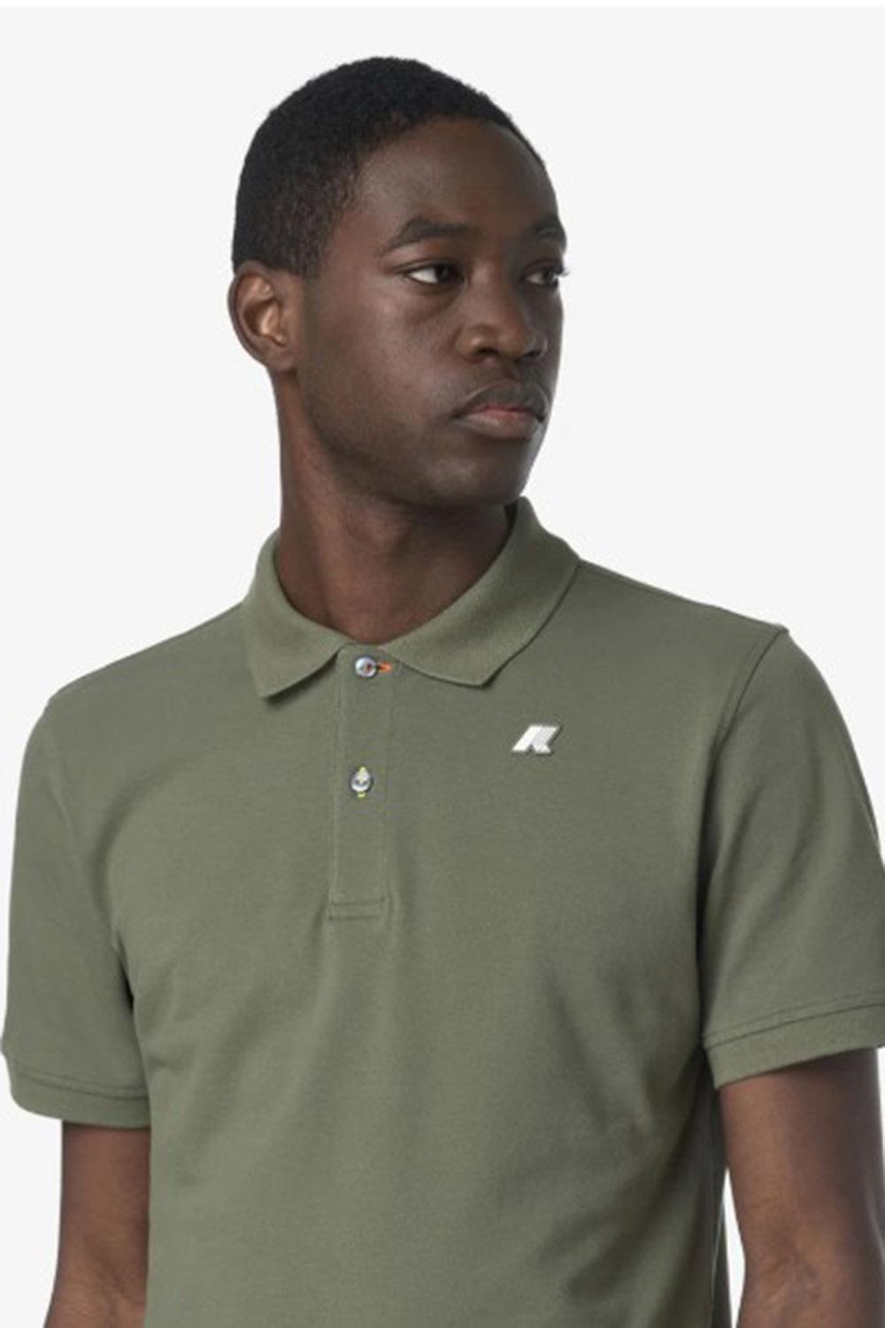 Vinnie è la polo in piquet di cotone elasticizzato con il collo e i bordi delle maniche dal colore a contrasto e l'interno della chiusura decorato con il classico tape K-Way. La linea slim e contemporanea è rifinita con il logo sul petto.